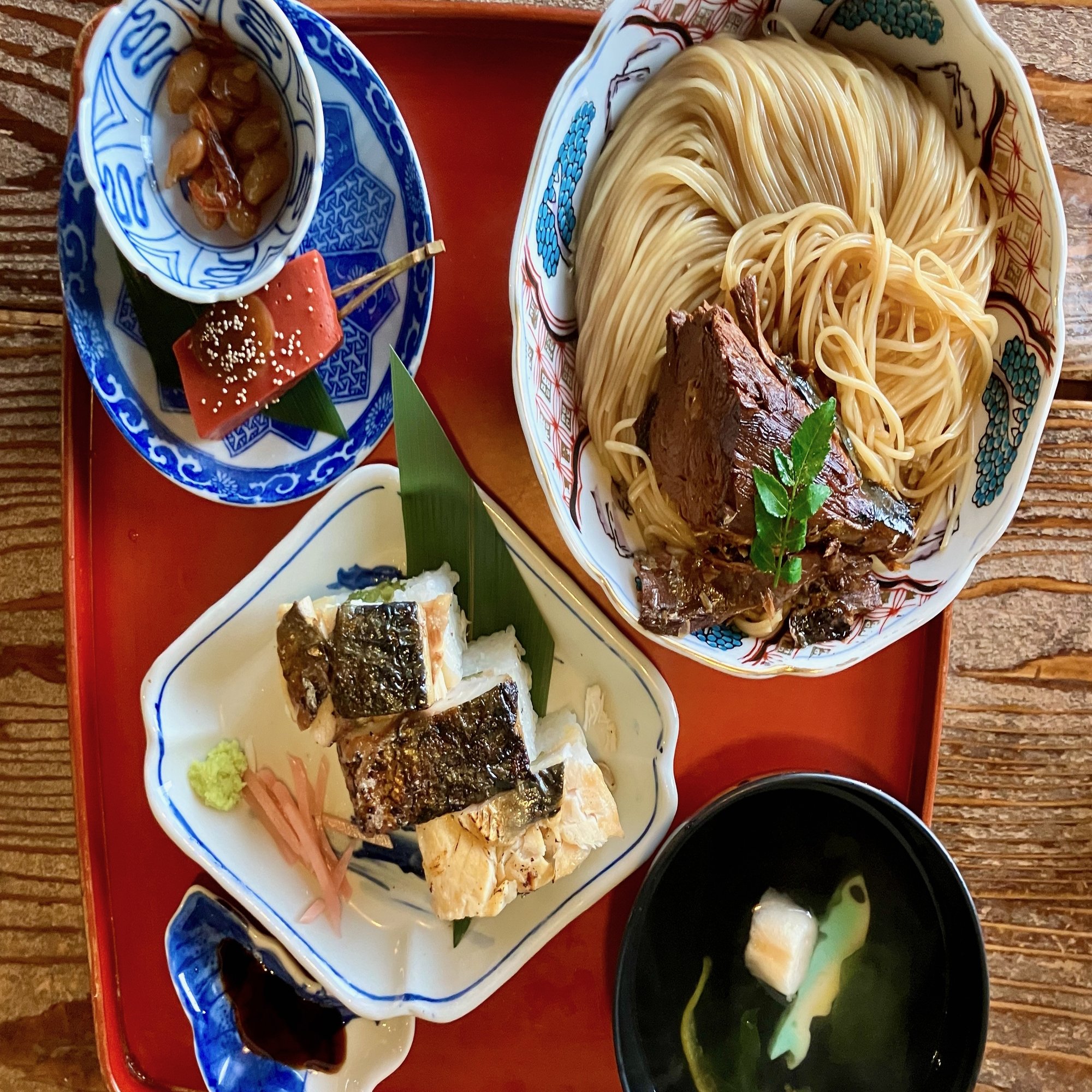 吸い物と、焼鯖の押し寿司が付いてくる。